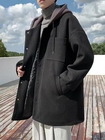 Cappotto lungo da uomo con cappuccio patchwork