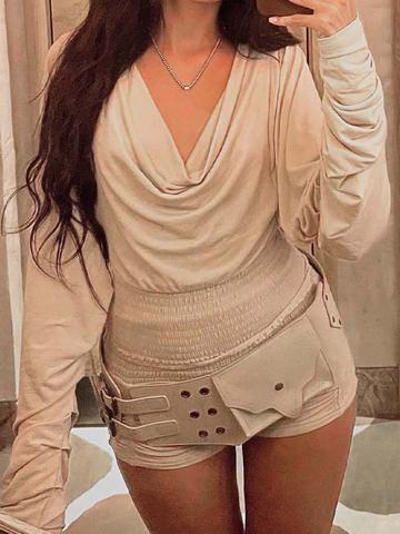 • EMMIOL Collo a barca con cintura in vita e maniche lunghe