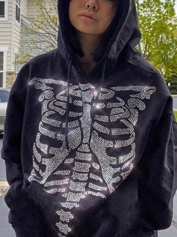 Felpa con cappuccio e dettagli in strass con teschio