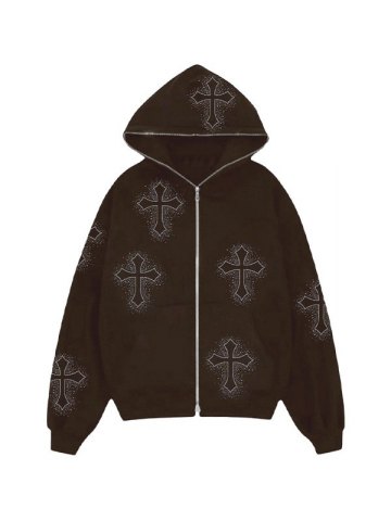 • EMMIOL Felpa con cappuccio e zip con motivo a croce e strass