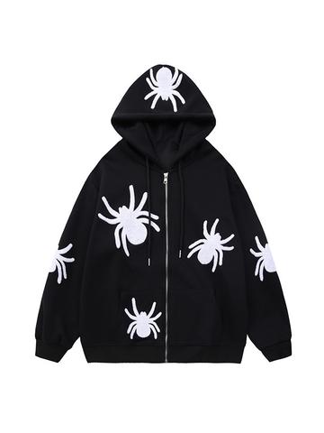 • EMMIOL Felpa con cappuccio oversize decorata con stampa ragno