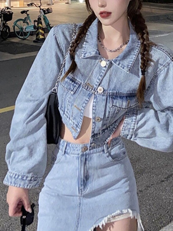Giacca di jeans corta con bottoni