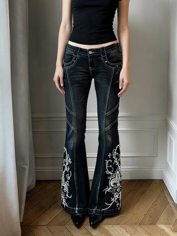 Jeans a zampa aderenti con stampa