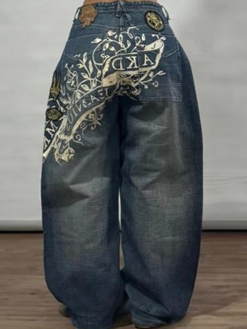 Jeans boyfriend con ricamo streetwear su misura ispirati al retrò