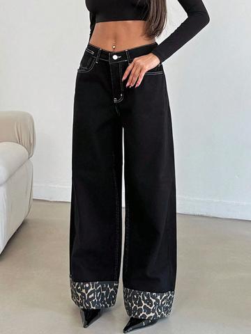 • EMMIOL Jeans boyfriend con stampa leopardata e cuciture visibili