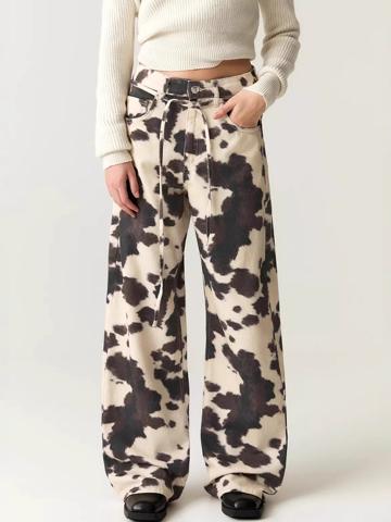• EMMIOL Jeans boyfriend con stampa mucca retrò