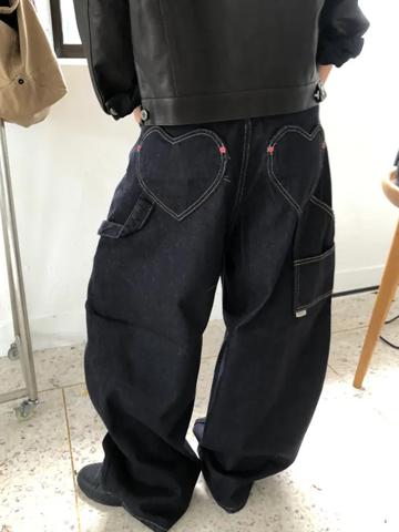 Jeans boyfriend retrò con tasche a forma di cuore