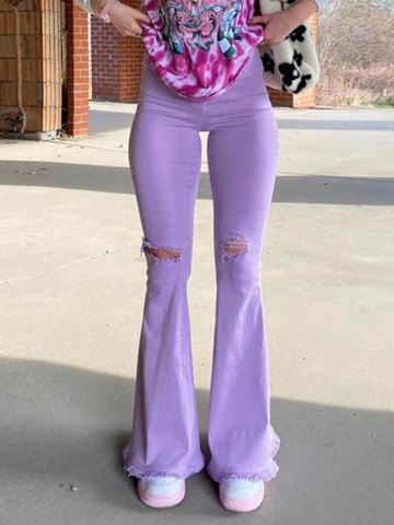 Tipo di vestibilità: gamba svasata Design: chiusura con bottone e zip, vita alta, tasche funzionali, strappato al ginocchio, orlo a taglio vivo, gamba svasata aderente