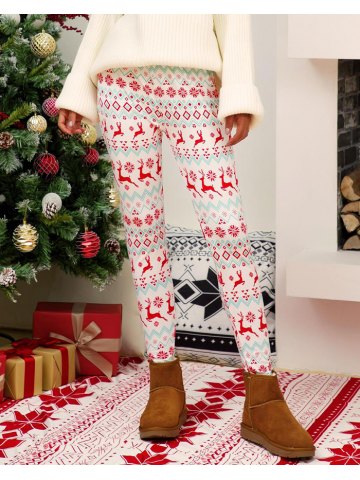 Leggings natalizi con stampa di alci e fiocco di neve