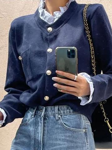 • EMMIOL Maglioni con piccoli bottoni e colletto arricciato