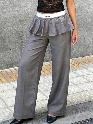 • EMMIOL Pantaloni a gamba dritta con patchwork di pizzo arricciato
