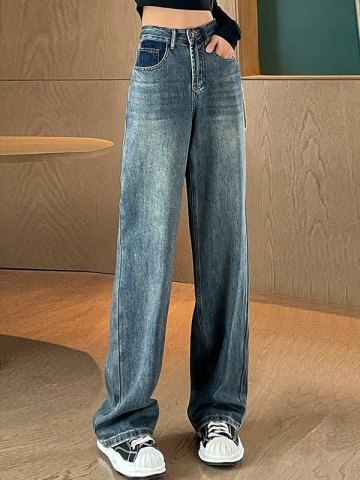 Tubo di jeans a gamba dritta a contrasto